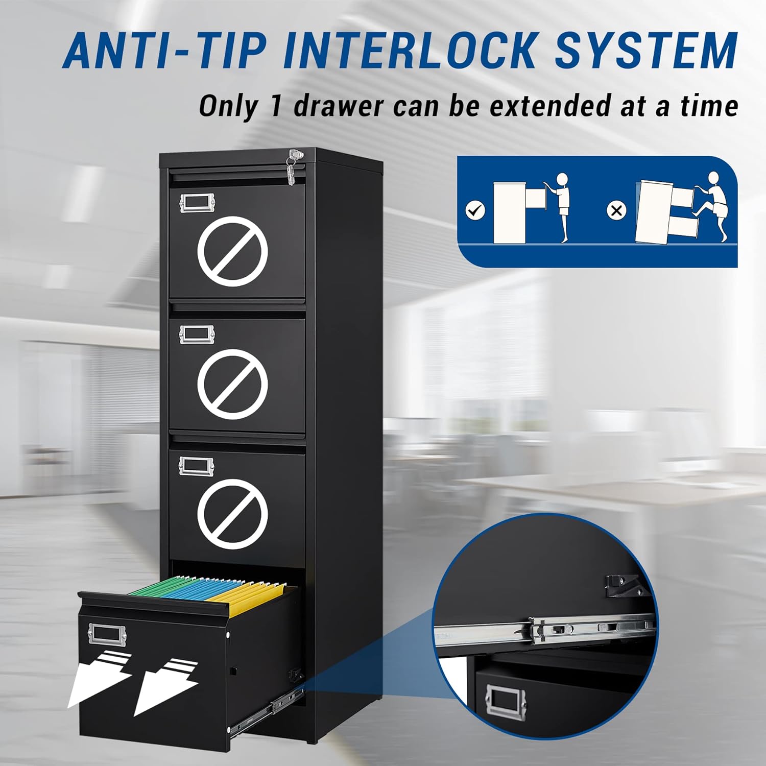 Keep your important documents organized and secure with our 4 Drawers Vertical File Cabinets. Made from durable metal steel, these lateral filing cabinets are perfect for your home office or workspace. The lockable design ensures that your files are safe and confidential.